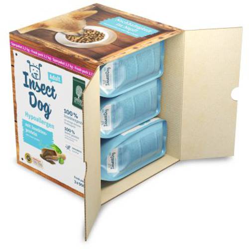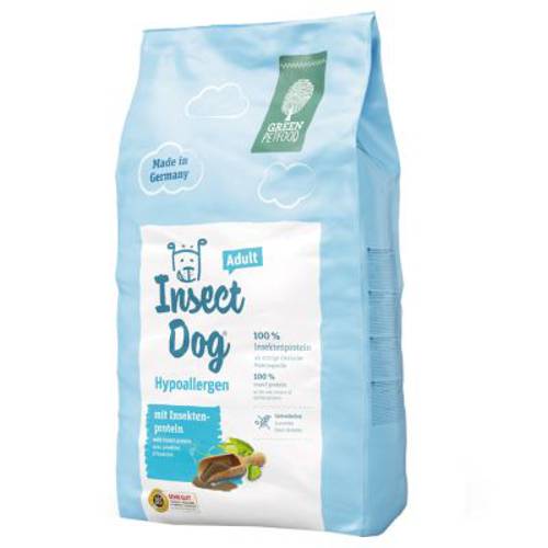 Idealna alternatywa dla psów, które mają problemy z trawieniem konwencjonalnej karmy, zawierającej mięso lub ryby - Green Petfood InsectDog, karma hipoalergiczna zawiera wyłącznie białko z owadów, będące źródłem budulców białkowych i kwasów tłuszczowych. Owady były dotąd rzadko wykorzystywane w produkcji karmy dla zwierząt, dzięki czemu nie wywołują alergii i są dobrze przyswajalne, nawet przez wyjątkowo wrażliwe psy. Oprócz tego hodowla owadów wywołuje niską emisję CO2, dzięki czemu produkcja karmy jest przyjazna dla środowiska.Obok białka z owadów, które służy jako wyłączne źródło białek zwierzęcych, bezzbożowa karma sucha zawiera także warzywa, wartościowy olej słonecznikowy i zrównoważoną mieszankę składników witalnych. Karma zaopatrzy Twojego dorosłego psa we wszystkie witaminy, minerały i mikroelementy, które są ważne dla jego zdrowa i dobrego samopoczucia. Green Petfood InsectDog jest wyprodukowana z najlepszych składników, bez sztucznych aromatów, barwników i konserwantów, to ekologiczny pokarm dla nowoczesnego psiego domu!