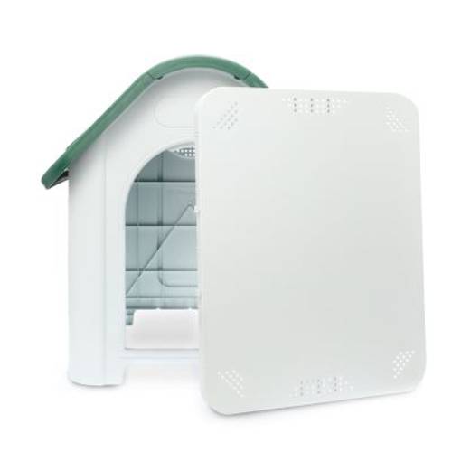 Buda z tworzywa sztucznego dla małych oraz średnich psów, idealna dla alergików, łatwa w czyszczeniu, dobra cyrkulacja powietrza dzięki otworom wentylacyjnym, z klapą dachową, szybki montaż