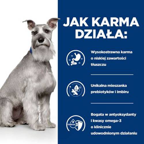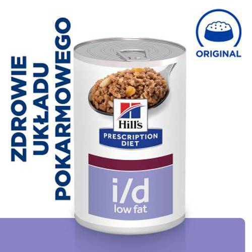 W przypadku wystąpienia problemów trawiennych pomocny może być lekki posiłek, który nie obciąża nadmiernie układu pokarmowego. Hill's Prescription Diet i/d Low Fat Digestive Care to dietetyczna karma mokra dla psów, która została opracowana specjalnie w celu wspomagania niewystarczającego trawienia, jak również łagodzenia ostrych zaburzeń wchłaniania jelitowego.