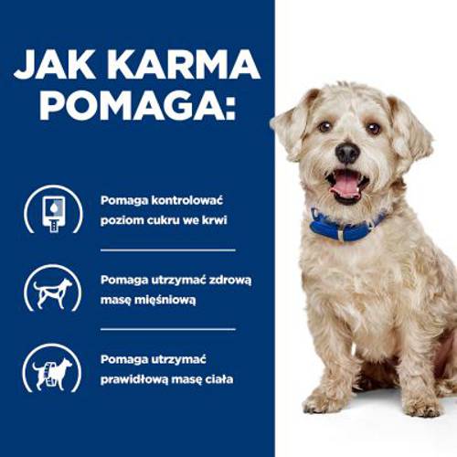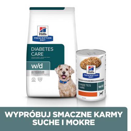 Karma dla psów Hill's Prescription Diet w/d Diabetes Care została opracowana specjalnie z myślą o wspomaganiu leczenia cukrzycy u dorosłych psów. Pomaga w tym niska zawartość cukru. Ponadto dieta sucha karma charakteryzuje się zbilansowaną zawartością tłuszczu i kalorii, co może wspierać utrzymanie idealnej wagi.