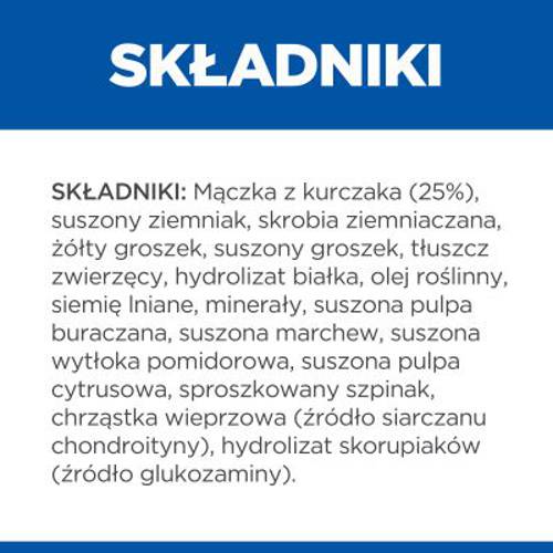 Kiedy pies znajduje się w kwicie wieku, potrzebuje pożywienia, które dostarczy mu energii do codziennych aktywności. Hill's Science Plan Adult 1-5 No Grain Large, kurczak jest szczególnie odpowiednia dla dorosłych psów dużych ras o wysokich wymaganiach energetycznych i odżywczych.Hill's Science Plan Adult No Grain Large to karma, w której głównym składnikiem jest kurczak - źródło wartościowego białka ważnego dla utrzymania masy mięśniowej. Pokarm nie zawiera zbóż i glutenu, dlatego jest odpowiednia dla psów o wrażliwych żołądkach lub nietolerancjami pokarmowymi. Sięgamy wyłącznie po wyselekcjonowane, wysokiej jakości składniki, dzięki czemu możesz mieć pewność, że Twój pies każdego dnia otrzymywać będzie to, co najlepsze.