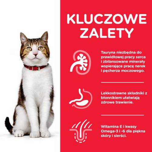 Niepowtarzalny kompleks przeciwutleniaczy składający się z witamin E i C przyczynia się do prawidłowego przebiegu procesów starzenia się komórek. Witaminy C i E z kolei korzystnie wpływają na funkcjonowanie układu odpornościowego. Jednak tym, co wabi kota do miski, jest przede wszystkim smakowitość, która w przypadku karmy marki Hill's zapewnia najwyższą akceptację.