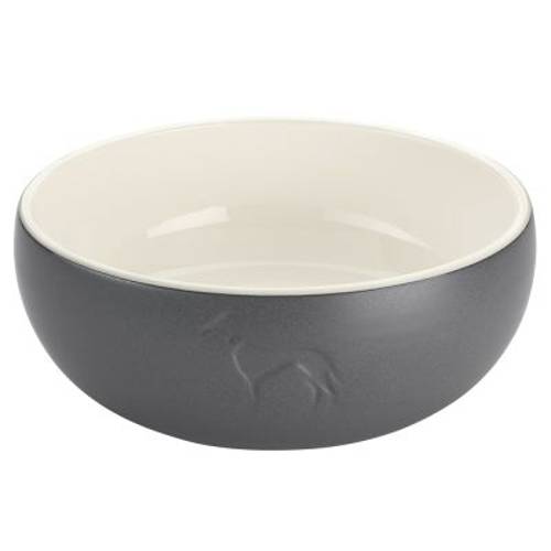 Wysoka masa własna miski sprawia, że ta nie chwieje się podczas spożywania posiłków. Dzięki temu idealnie nada się dla psów, które nadwrażliwie reagują na hałasy podczas jedzenia. Ceramika jest odporna na zarysowania. Silikonowy pierścień od spodu miski chroni podłogę przed zniszczeniem oraz zapewnia wysoki poziom stabilności. Ceramiczna misa HUNTER Lund ma matową glazurę i jest utrzymana w subtelnej szarości i bieli. Stylowy design uzupełnia wytłaczane logo HUNTER.