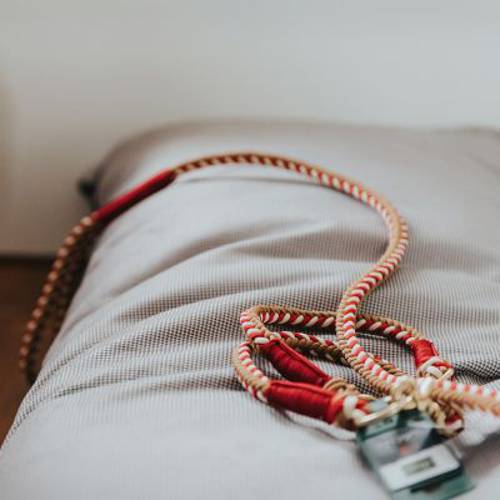 - Ręcznie pleciona: z trzech kolorowych lin w marynistycznym stylu.