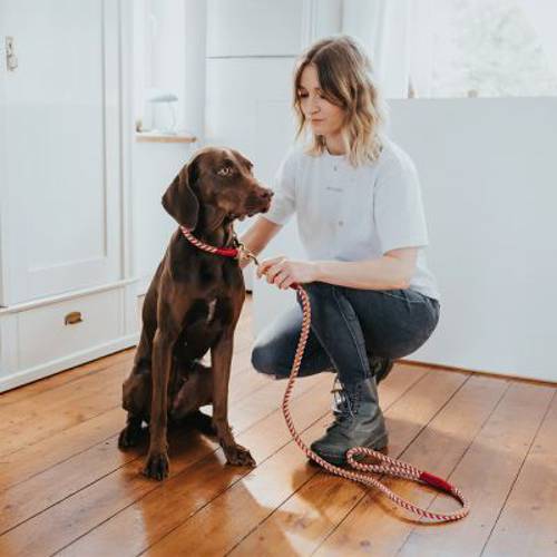 Smycz Tinnum marki HUNTER jest idealnym akcesorium dla wszystkich opiekunów psów, którzy lubią zwrócić na siebie uwagę podczas spaceru. Ta ręcznie pleciona smycz utrzymana jest w trzech harmonijnych kolorach i z pewnością zachwyci wielbicieli marynistycznego stylu. Równie imponujące są właściwości użytkowe prezentowanej smyczy linkowej: stała pętla nadgarstkowa dobrze leży w dłoni, a przyjemnie miękka linka gwarantuje wysoki komfort noszenia. Poza tym duży mosiężny karabinek ułatwia szybkie przypinanie i odpinanie psa.HUNTER smycz spacerowa Tinnum, czerwono-beżowa w skrócie: