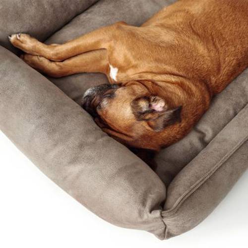 - Prostokątne legowisko dla psa z wygodnym rantem.