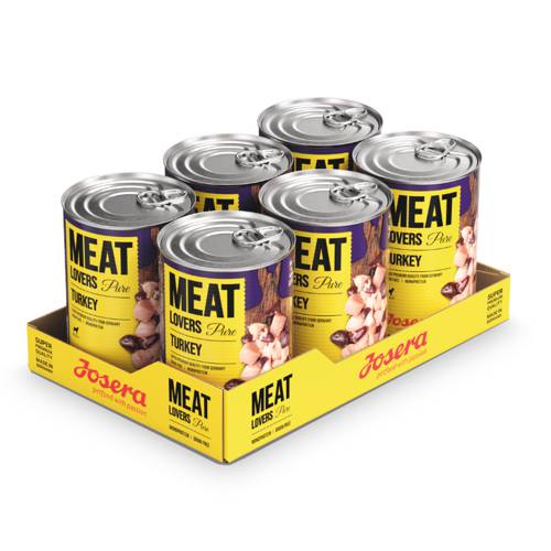 Josera Meatlovers Pure indyk 6x400g Meat Lovers Pure to odpowiednio zbilansowane, pełnoporcjowe karmy nadające się idealnie do codziennego żywienia, jak również smaczny dodatek do diety dorosłego czworonoga. Meat Lovers Pure Indyk to najwyższej jakości bezglutenowa i bezzbożowa mokra karma, w sam r…