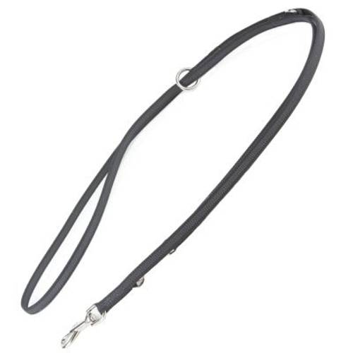Smycz z potrójną regulacją długości, idealna dla silnych psów, z karabińczykami, poręczna i przyjemna w dotyku nawet w deszczu, wytrzymała, zasięg 2,2 m, z nylonu, bawełny i gumowych włókienGumowana smycz w kształcie litery V doskonale pasuje do ergonomicznych szelek z serii Power producenta markow…