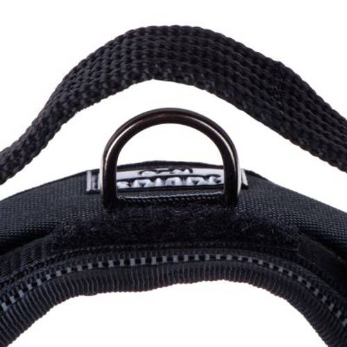 Wierzch szelek jest wykonany z wytrzymałego, odpornego na zadrapania i wodoodpornego materiału. Dla dodatkowego komfortu zastosowana została podszewka z oddychającej, przyjaznej dla skóry bawełny z certyfikatem OEKO-TEX. W celu zwiększenia widoczności w ruchu drogowym i przy złej pogodzie szelki posiadają wszyte elementy odblaskowe. W części grzbietowej szelek został umieszczony pierścień ze stali INOX® służący do przypięcia smyczy, co pozwala na wygodne prowadzenie psa.