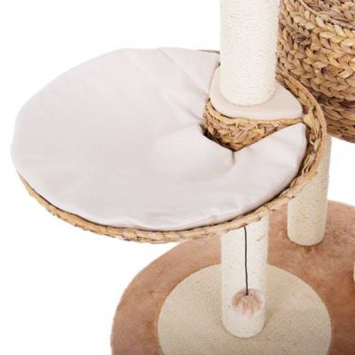 Duży drapak z dwoma dziuplami i dwoma platformami z pięknie wyplatanych naturalnych liści bananowca - wytrzymałego i odpornego na drapanie materiału