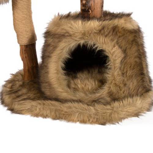 Naturalny drapak dla kotów, każdy egzemplarz to unikat, prawdziwe pnie drzew, drewno i sizal do drapania, wyściełane koszyczki i pluszowy domek, z pluszową piłką, 74 x 48 x 107–117 cm