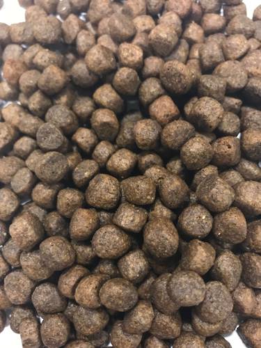 Łosoś, plamiak i błękitek 60% (świeżo przygotowany łosoś 21%, suszony łosoś 16%, świeżo przygotowany błękitek 11%, świeżo przygotowany plamiak 10%, bulion łososiowy 2%), bataty (20%), ziemniaki, pulpa buraczana, groszek (6%), siemię lniane, suplement omega-3, minerały, bulion warzywny, szparagi (0…