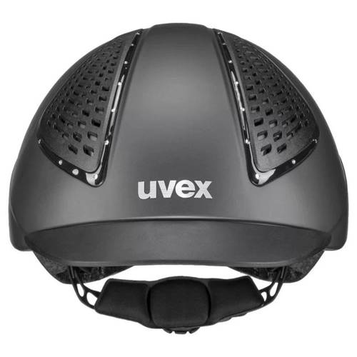 Kask Exxential II Glamour - Uvex - wyjątkowo lekki, o bardzo dobrej wentylacji. Wnętrze kasku wyścielone jest oddychającą wyściółką, zapewniającą jeźdźcowi komfort nawet podczas wzmożonego wysiłku fizycznego. Co ważne, wyściółka jest demontowana i może być prana. Zastosowany system 3D IAS pozwala na regulację w trzech wymiarach, dzięki czemu dopasujemy kask zarówno do obwodu jak i wysokości głowy. Łatwy i praktyczny w użyciu system FAS, umożliwia szybkie dostosowanie pasków - w każdej sytuacji kask trzyma się mocno na głowie, zawsze w dobrej pozycji.
