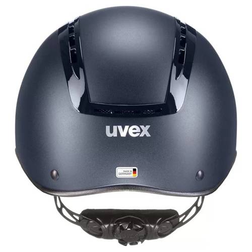 Kask Suxxeed Active - Uvex to elegancki kask, o klasycznym kształcie, w konstrukcji hardshell. Kombinacja zewnętrznej powłoki z ABS-u oraz wewnętrznej z EPS, zapewnia najwyższy poziom bezpieczeństwa. Dedykowany dla dresażystów oraz osób, które oprócz bezpieczeństwa i komfortu zwracają uwagę na wykwintny wygląd. Podkreśleniem elegancji jest między innymi pokrycie paska podbródkowego, delikatną syntetyczną skórą.