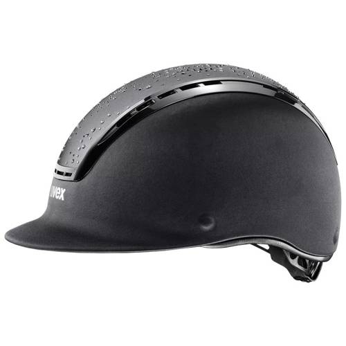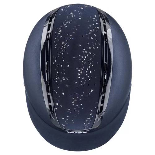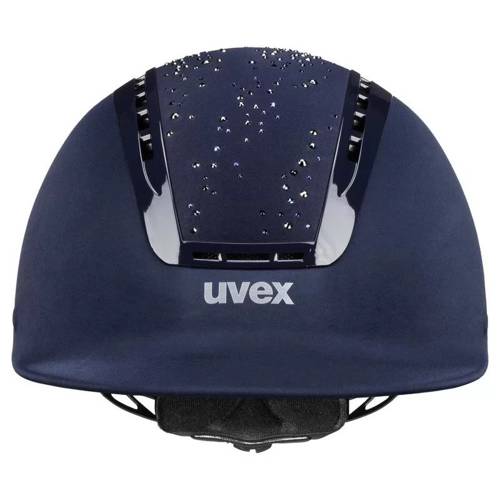 Zaprojektowany specjalnie dla Uvex`a przez firmę Swarovski panel środkowy, podkreśla wyjątkowość tego kasku. Pokrycie skorupy zewnętrznej wykonano satynową tkaniną poliestrową, a paska podbrudkowego delikatną syntetyczną skórą. Dostosowany do noszenia okularów. Nadzwyczaj lekki i pomimo klasycznej formy, posiadający wspaniałą wentylację. Wnętrze kasku wyścielone jest oddychającą wyściółką, zapewniającą jeźdźcowi komfort nawet podczas wzmożonego wysiłku fizycznego.