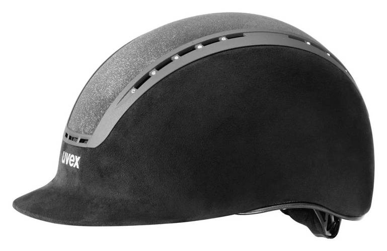 Kask Suxxeed Glamour - Uvex to wersja kasku suxxeede velours z dodatkowymi zdobieniami - elegancki kask, o klasycznym kształcie, w konstrukcji hardshell. Kombinacja zewnętrznej powłoki z ABS-u oraz wewnętrznej z EPS, zapewnia najwyższy poziom bezpieczeństwa. Dedykowany dla dresażystów oraz osób, które oprócz bezpieczeństwa i komfortu zwracają uwagę na wykwintny wygląd.