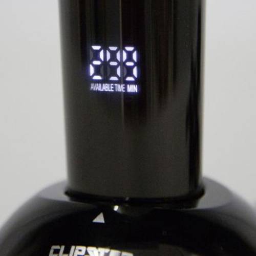 Istnieje również możliwość włączenia wyświetlacza LED w celu kontroli czasu pracy maszynką. Cyfrowy wyświetlacz pokazuje stan naładowania akumulatora oraz pozostały czas pracy. Dodatkowo wyświetlacz informuje, kiedy należy ponownie wyczyścić i naoliwić maszynkę.