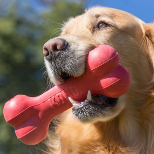 Dzięki KONG Goodie Bone otrzymujesz niezwykle wytrzymałą zabawkę dla psa, dzięki której zwierzę zaspokoi naturalny instynkt gryzienia i żucia. Czerwona kość składa się z naturalnego kauczuku znanego z produktów KONG Classic i jest idealna do aportowania, a także do żucia. KONG Goodie Bone ma dwa opatentowane otwory Goodie Grippers ™, które można napełniać smakołykami. Daje to Twojemu psu jeszcze większą motywację do spędzania dużej ilości czasu z zabawką.