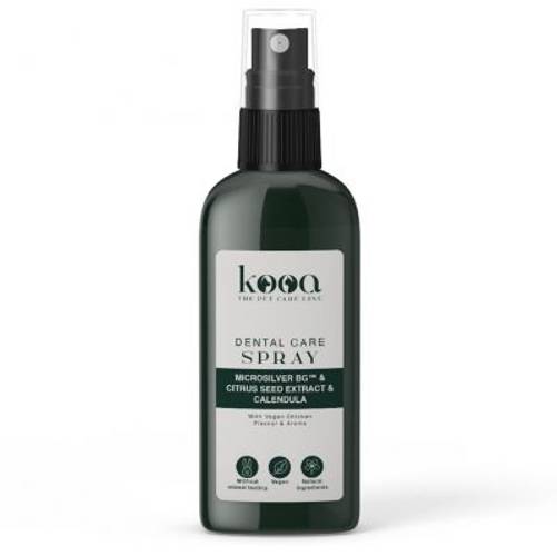 Spray do pielęgnacji zębów marki kooa zawiera między innymi ekstrakt z pestek cytrusów oraz MicroSilver BG™, które mogą zmniejszyć ryzyko wystąpienia płytki nazębnej. Dodatkowo nagietek może wspomóc pielęgnację dziąseł. Prezentowany produkt do pielęgnacji zębów nie zawiera sztucznych barwników ani syntetycznych substancji zapachowych, a oprócz tego na jego korzyść przemawia pyszny smak kurczaka, ale bez mięsa.