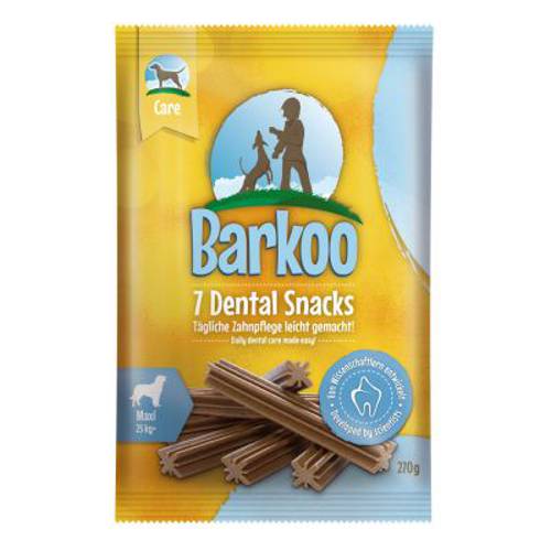 Barkoo Dental Snacks to przysmaki dentystyczne dla psów, które łaczą pielęgnację oraz przyjemność płynącą z żucia. Możesz rozpieścić swojego pupila tymi niezwykłymi przysmakami, jednocześnie dbajc o zdrowie i higienę jego jamy ustnej. Przysmaki zostały dopasowane rozmiarem do psów ras wszystkich wielkości.Specjalnie opracowany kształt ośmioramiennej gwiazdy oraz dopracowana konsystencja sprawiają, że osad usuwany jest zarówno z zębów, jak i z przestrzeni międzyzębowych. Codzienna zabawa psa z przysmakiem Barkoo zredukuje także ryzyko powstawania osadu nazębnego. Przysmak nie zawiera cukru.
