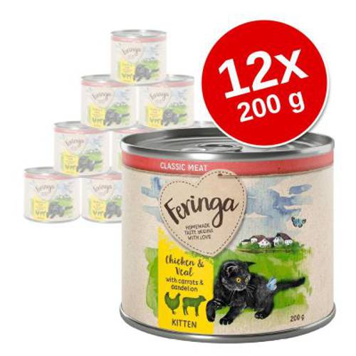 Korzystny pakiet Feringa karma mokra dla kociąt, 12 x 200 g Kurczak i cielęcina z marchewką i mniszkiem lekarskim