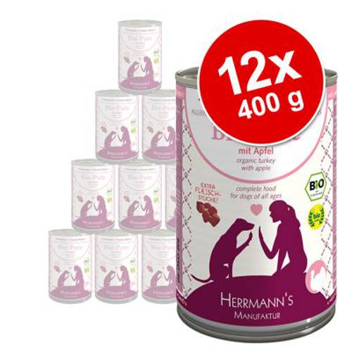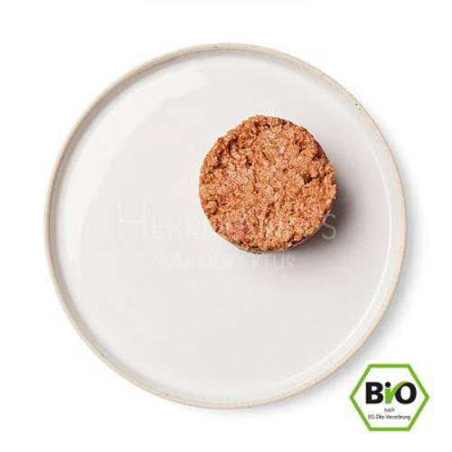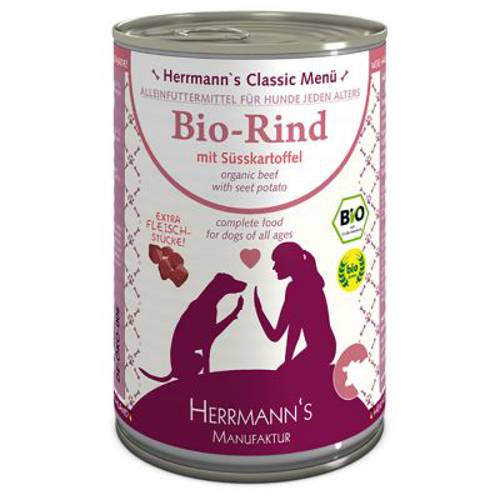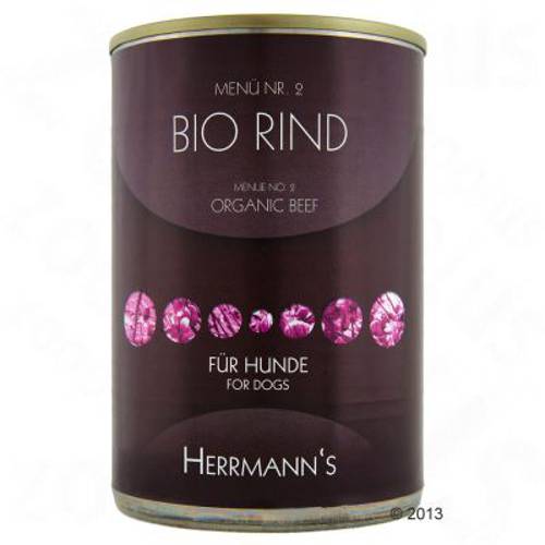 Hermann’s Bio Menu to zdrowe i wyważone karmy dostosowane do potrzeb psów każdej rasy. Ich składniki posiadają certyfikat jakości bio oraz pochodzą z kontrolowanych w większości upraw i hodowli. Wysokowartościowe surowce pozyskuje się w regionie Górnej Bawarii, gdzie znajduje się także siedziba producenta. Hermann’s przykłada szczególną wagę do kwestii zachowania najwyższych standardów jakości przy jednoczesnej dbałości o etyczną postawę firmy. Ubój zwierząt odbywa się na terenie wspomnianego regionu, by uniknąć transportu zwierząt, który może wyrządzać im krzywdę. Kontrola obejmuje również pokarm, który trafia do zwierząt hodowlanych. Stosowanie jakichkolwiek antybiotyków i innych substancji przyspieszających przybieranie na masie jest wykluczone! W miarę możliwości zwierzęta regularnie przebywają na wolnym wybiegu.Niestety trzy z surowców używanych w procesie produkcji karmy nie sa certyfikowane jakością bio: