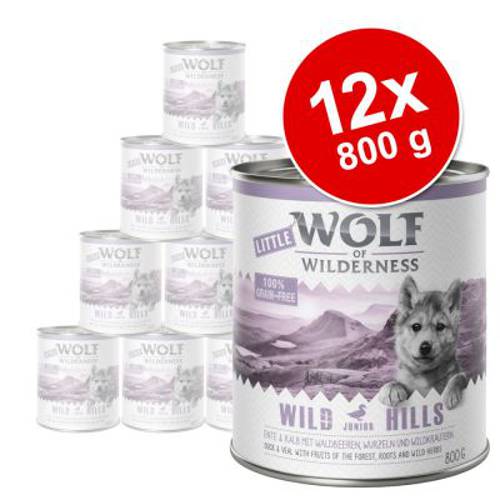 Korzystny pakiet Little Wolf of Wilderness Junior, 12 x 800 g Wild Hills Little, kaczka i cielęcina
