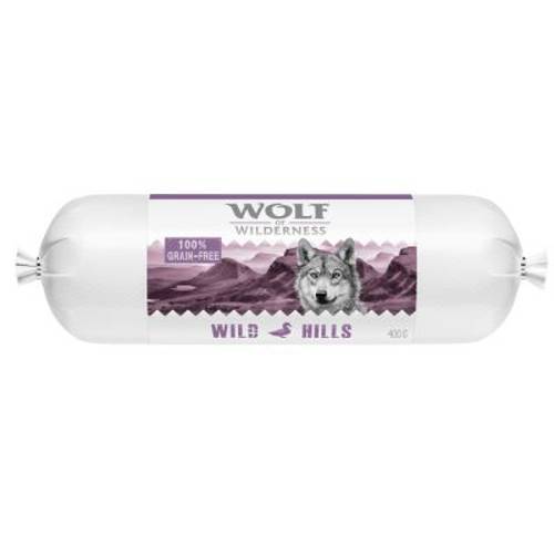 Korzystny pakiet Wolf of Wilderness Adult, 24 x 400 g, kiełbaski Wild Hills, kaczka