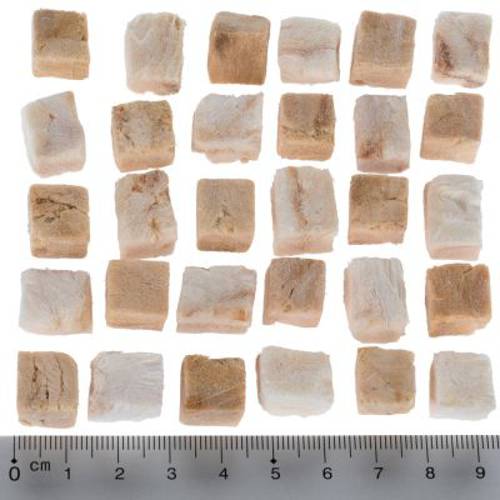 Ten pyszny przysmak dla kota składa się w 100% z najlepszego mięsa z kurczaka lub ryb, które podlegają delikatnemu procesowi liofilizacji. Proces ten polega na długotrwałym odwadnianiu świeżej piersi z kurczaka lub świeżego łososia i miruny przy pomocy ciepłego powietrza, co pozwala zachować intensywny smak mięsa. Ponadto zachowane zostają także wszystkie substancje odżywcze. Używa się wyłącznie mięsa i ryb najlepszej jakości, bez żadnych dodatków, konserwantów i barwników.zoolove przysmak dla kota w skrócie: