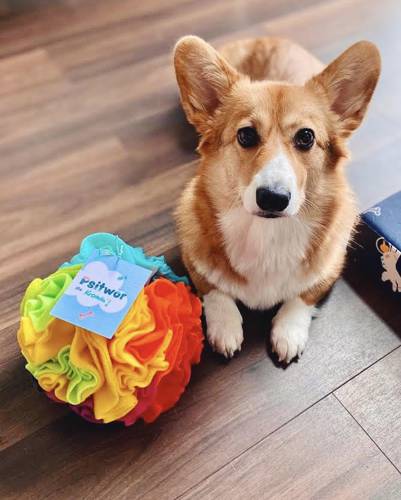 Kula węchowa to trudniejsza wersja maty. Smakołyki można schować głębiej, zajmuje więcej czasu, wymaga od pupila aktywności – kula się obraca, ucieka, trzeba ją przytrzymać, bardziej aktywizuje.