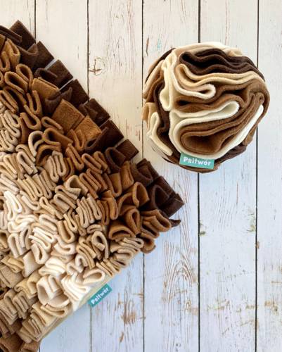 Kula węchowa to trudniejsza wersja maty. Smakołyki można schować głębiej, zajmuje więcej czasu, wymaga od pupila aktywności – kula się obraca, ucieka, trzeba ją przytrzymać, bardziej aktywizuje.