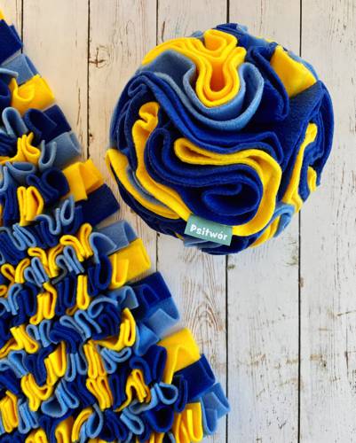 Kula węchowa to trudniejsza wersja maty. Smakołyki można schować głębiej, zajmuje więcej czasu, wymaga od pupila aktywności – kula się obraca, ucieka, trzeba ją przytrzymać, bardziej aktywizuje.