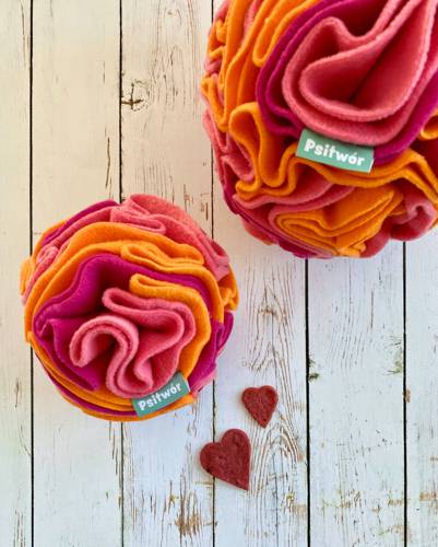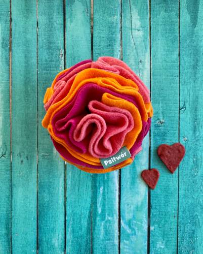 Kula węchowa to trudniejsza wersja maty. Smakołyki można schować głębiej, zajmuje więcej czasu, wymaga od pupila aktywności – kula się obraca, ucieka, trzeba ją przytrzymać, bardziej aktywizuje.