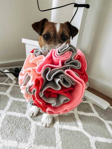 Kula węchowa to trudniejsza wersja maty. Smakołyki można schować głębiej, zajmuje więcej czasu, wymaga od pupila aktywności – kula się obraca, ucieka, trzeba ją przytrzymać, bardziej aktywizuje.