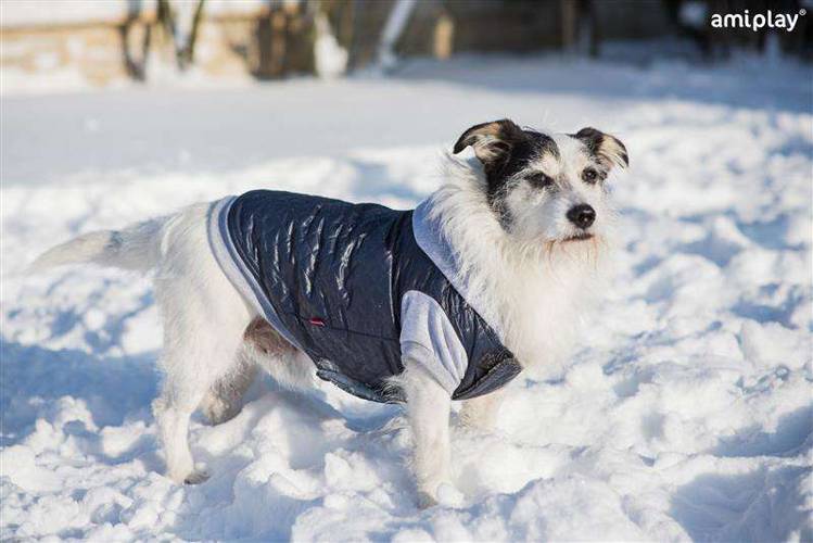 Kolekcja Amiplay Boston to wysokiej jakości wodoodporne kurtki dla psów zaprojektowane i wytworzone w Polsce z pełną dbałością o każdy szczegół. Wierzchnia warstwa wykonana została z modnego pikowanego materiału, natomiast wewnętrzna część kurtki z miękkiej dzianiny z dodatkową włókniną ocieplającą. Połączenie tych wszystkich elementów czyni ją najcieplejszą z kurtek znajdujących się w ofercie firmy amiplay. Dzięki temu doskonale zadba ona o odczucia termiczne pupila. Idealnie sprawdzi się w mroźne, zimowe dni, chroniąc czworonoga przed przemoknięciem i wychłodzeniem. Kurtka posiada długi rękaw oraz kaptur, co dodatkowo osłania przed chłodem i nieprzyjemnymi warunkami atmosferycznymi. Ubranka z serii Boston wyposażone zostały w regulowane zapięcie na rzepy, dzięki któremu w łatwy sposób można dopasować je do obwodu klatki piersiowej psa. Rozwiązanie to pozwala również na szybkie założenie i zdjęcie kurtki. W górnej części znajduje się specjalny otwór, dzięki któremu w łatwy sposób można przypiąć smycz do obroży lub szelek pod ubraniem. Odzież jest bardzo przyjazna dla psiego ciała, nie powodując podrażnień, otarć ani wycierania sierści. Jest miękka i miła w dotyku, dzięki czemu pupil nie odczuwa żadnych niedogodności podczas używania. Prezentowany produkt to dla czworonożnego przyjaciela to nie tylko ciepłe, ale i nowocześnie prezentujące się wdzianko. Warto pomyśleć również o zabezpieczeniu łap naszego ulubieńca, tu doskonałym wyborem mogą być buty, które nie tylko chronią przed zimnem, ale i przed skaleczeniami. Dzięki odpowiedniemu ubraniu dla pupila, każdy spacer będzie przyjemnością, bez względu na warunki atmosferyczne.
