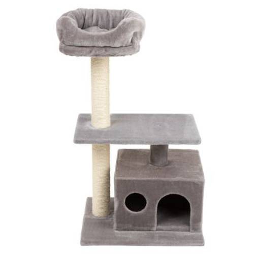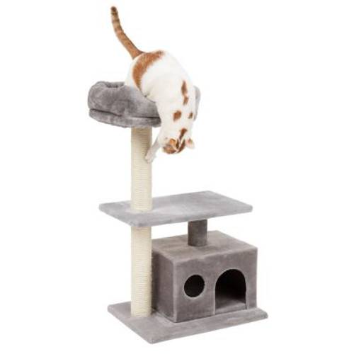 Stabilny drapak z dużym domkiem do zabawy i drzemki, platforma widokowa z legowiskiem, sizalowe słupki, dla kotów do 6 kg, wys x dł. x szer.: 90 x 60 x 39 cm