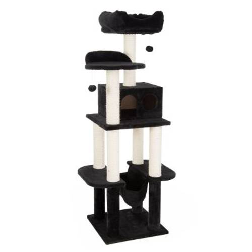 Stabilny drapak z wygodnym hamakiem, duże jaskinie, miękkie legowisko w kształcie łap i wysoki punkt obserwacyjny z poduszkami. Wymiary, dł. x szer. x wys.: 49 x 49 x 163 cm
