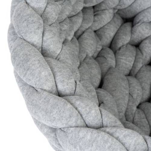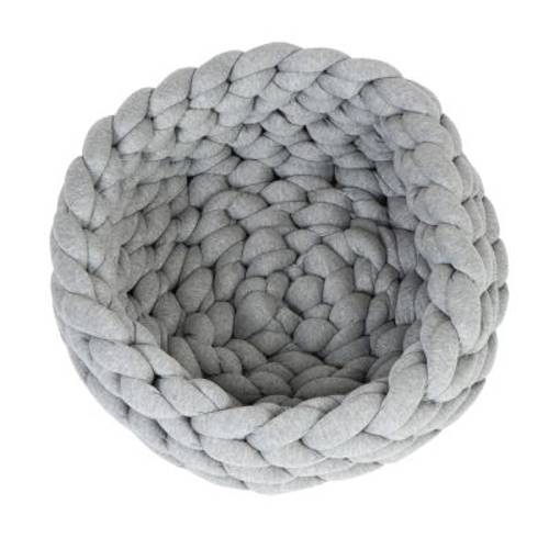 Okrągły, przytulny koszyk dla kotów, nowoczesny i modny, grubo dziany z dżersejowej wełny typu chunky, wysoki bok, zachęca zwierzę do zwinięcia się w kłębek, można w całości prać w pralce, kolor: szary