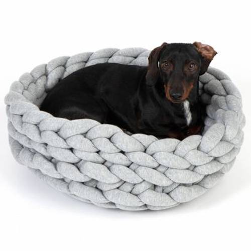 Stylowe legowisko Brooklyn to nie tylko przytulne gniazdko, lecz także ozdobny element wyposażenia domu, w którym mieszkają zwierzęta. Legowisko nadaje się zarówno dla kotów, jak i dla małych psów i zapewnia zwierzęciu bardzo wysoki komfort. Ten nowoczesny, grubo dziany koszyczek wygląda przytulnie i modnie i pasuje do każdego wystroju wnętrza.Okrągły kształt sprawia, że legowisko Brooklyn jest wręcz stworzone do tego, aby zwierzę mogło się w nim zwinąć w kłębek. Poddana ręcznej obróbce przędza olbrzymia została wykonana z włókna dżersejowego, wyglądem przypominającego wełnę chunky. Cały koszyczek jest cudownie miękki, ciepły i wygodny. Poza tym wysoki bok aż się prosi, aby się o niego oprzeć i stanowi doskonałe uzupełnienie komfortowego designu.