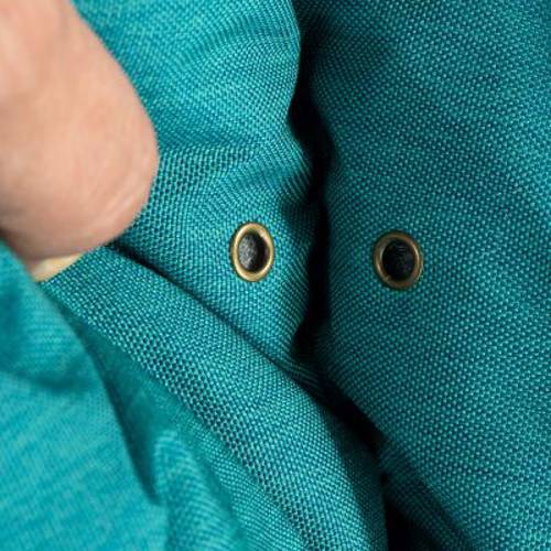 Relaks z panem lub panią na tarasie lub na balkonie? Legowisko dla psa Sioux zostało stworzone właśnie na taką okazję! Można je wystawić na zewnątrz w miejsce częściowo zadaszone; bez problemu zniesie ono lekki deszczyk.Krople deszczu nie wsiąkają w legowisko, tylko staczają się po bokach. Wszystkie materiały zostały pokryte warstwą wodoodpornego poliuretanu. Małe otwory umożliwiają cyrkulację powietrza i zapobiegają gromadzeniu się wilgoci. Warstwa spodnia jest wytrzymała, dzięki czemu legowisko można postawić na ziemi. Jego brzeg jest lekko obniżony w jednym miejscu, co ułatwia wejście. Miękka poduszka zapewnia komfort; doskonale się na niej wypoczywa po dniu pełnym wrażeń, z kolei ładny, turkusowo-szary design przyciąga wzrok.
