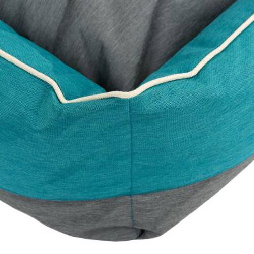 Relaks z panem lub panią na tarasie lub na balkonie? Legowisko dla psa Sioux zostało stworzone właśnie na taką okazję! Można je wystawić na zewnątrz w miejsce częściowo zadaszone; bez problemu zniesie ono lekki deszczyk.Krople deszczu nie wsiąkają w legowisko, tylko staczają się po bokach. Wszystkie materiały zostały pokryte warstwą wodoodpornego poliuretanu. Małe otwory umożliwiają cyrkulację powietrza i zapobiegają gromadzeniu się wilgoci. Warstwa spodnia jest wytrzymała, dzięki czemu legowisko można postawić na ziemi. Jego brzeg jest lekko obniżony w jednym miejscu, co ułatwia wejście. Miękka poduszka zapewnia komfort; doskonale się na niej wypoczywa po dniu pełnym wrażeń, z kolei ładny, turkusowo-szary design przyciąga wzrok.