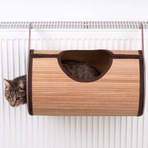Przytulne legowisko dla kota w kształcie tunelu, z naturalnego bambusa, 3 otwory, pluszowa poduszka, łatwy montaż, do zawieszenia na kaloryferze, wymiary: dł. x szer. x wys.: 47 x 27 x 40 cm Koty uwielbiają ciepło oraz przytulne otoczenie. Z legowiskiem Natural Retreat stworzysz swojemu pupilowi m…