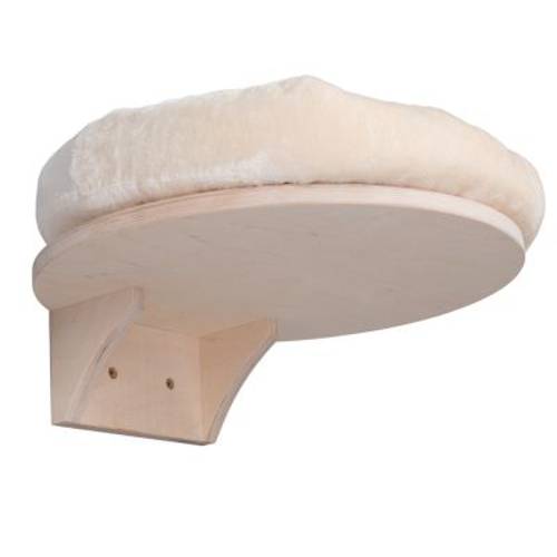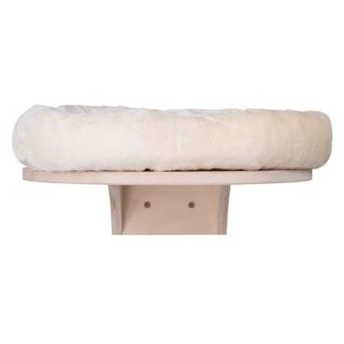 Okrągłe legowisko do przymocowania do ściany, z naturalnego drewna z przymocowaną poduszką z zapięciami na rzepy. Można prać w pralce w temp do 30°C, łatwy montaż