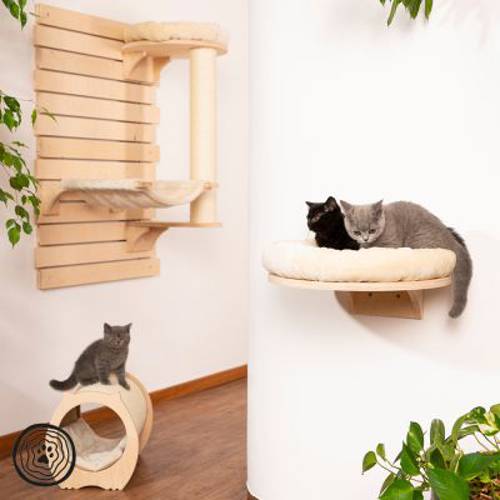 Ach, tak. Kilka legowisk! To byłoby jeszcze lepsze. Wtedy można skakać z jednego na drugie i dotrzeć w ten sposób do jeszcze wyższych punktów obserwacyjnych lub po prostu przejść do drapaka, stojącego przy ścianie. Od razu powiedz swoim dwunożnym przyjaciołom, że kilka legowisk można świetnie połączyć bez konieczności zajmowania miejsca na podłodze. Aha, i nie martw się: legowisko zostało wykonane z solidnej płyty z prawdziwego drewna i może wytrzymać wiele. Możesz wskoczyć na nie tak energicznie, jak tylko masz ochotę!