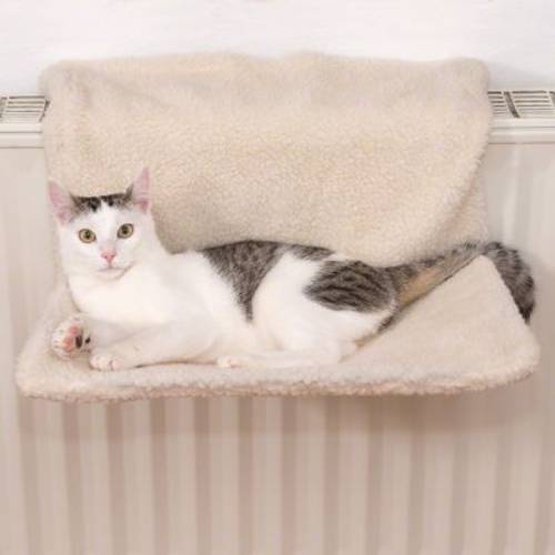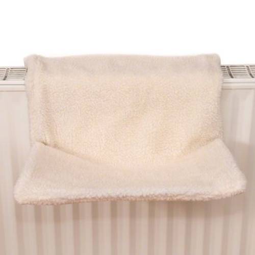 Przytulne legowisko, które można zawiesić na kaloryferze, pasuje do standardowych kaloryferów o maksymalnej głębokości 10 cm, z miękką pluszową poszewką, wymiary; dł. x szer. x wys.: 50 x 30 x 20 cm
