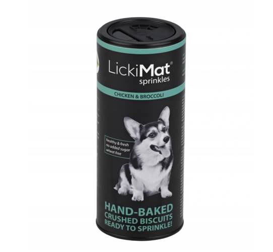 SPRINKLES to idealny dodatek do LickiMat®! To przysmak wypiekany, aromatyczny, w postaci sproszkowanych ciasteczek. Co jest w nim takiego specjalnego? jest szybki i wygodnybez dodatku cukru i soli Jak stosować SPRINKLES? Lekko zwilżyć matę, wsypać Sprinkles (wystarczy mała ilość). Przysmak przylg…
