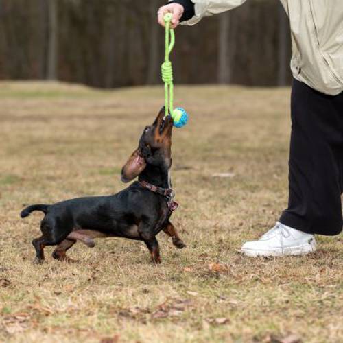 - Piłka-węzeł, łatwa do chwytania i przenoszenia w pysku.