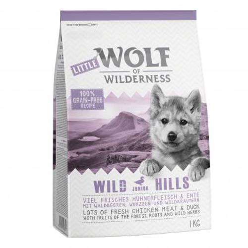 Naturalna karma karmy Wolf of Wilderness Wild Hills Junior składa się w 59% z mięsa, a do tego uzupełniona jest o owoce leśne, korzenie i dzikie zioła. Świetną akceptację zapewnia świeże mięso z kurczaka i kaczki. Dzięki temu karma jest delikatna i bogata w białka zwierzęce. Jest pojedynczym i lekkostrawnym źródłem węglowodanów i substancji balastowych są ziemniaki. Zapewniają one zbalansowane przyswajanie substancji odżywczych. Są one naturalnym źródłem węglowodanów, nie zawierają tłuszczu oraz dostarczają ważnych mikroelementów i substancji balastowych. Żurawina, owoc czarnego bzu, maliny i czerwone porzeczki w połączeniu z korzeniem mniszka i ziołami takimi jak bylica pospolita, dziurawiec, pokrzywa, rumianek, krwawnik i podbiał, dostarczają niezbędnych substancji witalnych i minerałów oraz drugorzędnych substancji roślinnych.
