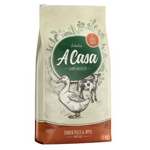 Karma Lukullus A Casa Tender Duck & Apple (krucha kaczka z jabłkiem) zawiera kruche, świeże mięso z kaczki i soczystą cielęcinę, doprawione lokalnymi składnikami superfoods: jabłkiem, grochem i owocami czarnego bzu. Receptura została udoskonalona olejem z łososia i oliwą z oliwek stanowiącymi naturalne źródła kwasów tłuszczowych omega-3 i omega-6. Bezzbożowe krokiety są powoli i delikatnie wypiekane, przez co zachowują pierwotne składniki odżywcze i smak. Naturalne i urozmaicone receptury dostarczają do organizmu Twojego psa wszystkie niezbędne składniki pokarmowe. Wypiekana i chrupka, pachnąca rozmarynem, z widocznymi kawałeczkami siemienia lnianego i ziół karma Lukullus A Casa jest starannie przyrządzona niczym w domowym zaciszu.