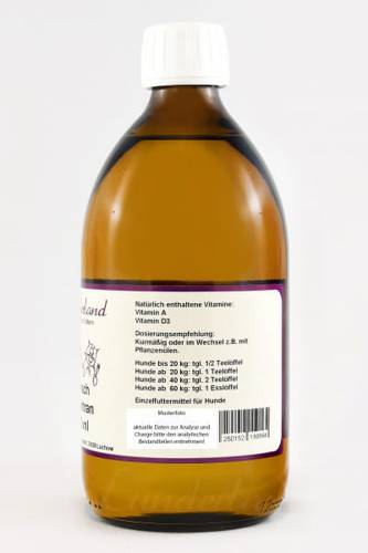 Dawkowanie: Koty i małe psy do 20 kg - 1/2 łyżeczki do herbaty dziennie. Psy od 20 kg - 1 łyżeczka dziennie, psy od 40 kg - 2 łyżeczki dziennie, psy od 60 kg 1 łyżka dziennie.